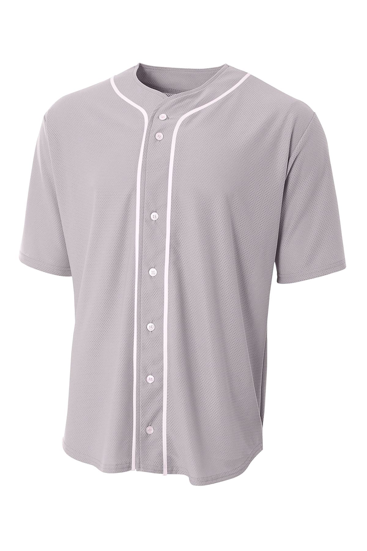 Get maximum mobility and breathability in this classic baseball jersey constructed with a pinpoint stretch mesh. 5.9-ounce 94/6 polyester/spandexMoisture-wickingOdor-resistantStain releaseWhite contrast taping on neck and placketDouble-needle hemTag-free label
