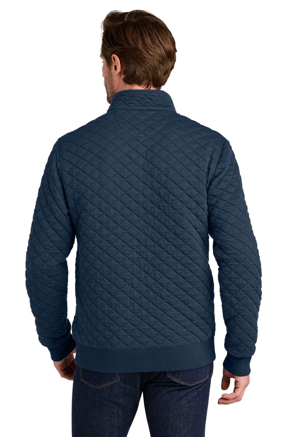 Add a touch of sophistication to any outfit with a diamond quilt layer. These luxurious fleece pieces are built to last and make a heritage statement with unequaled style and functionality. 10-ounce 60/38/2 cotton/recycled polyester/spandex double knit Brooks Brothers tie-stripe neck taping Half-moon at back neck Metal zipper with antique silver Brooks Brothers logo zipper pull Welted zipper placket Bound interior seams 2×2 rib knit cuffs and hem Brooks Brothers Golden Fleece logo at left hem