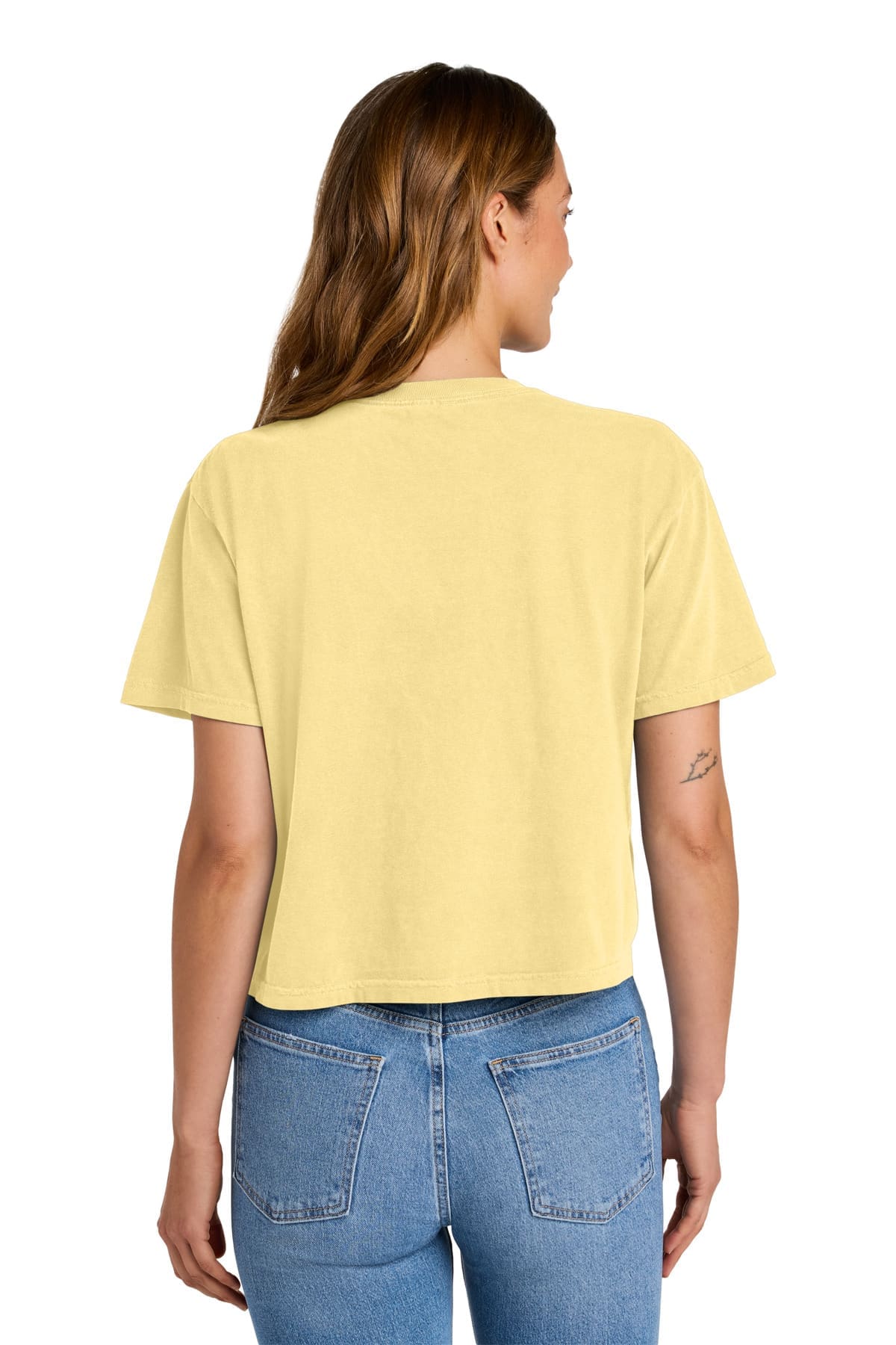 6.1-ounce 100% US ring spun cotton Garment-dyed fabric for a lived-in feel Top-stitched classic width rib collar Shoulder to shoulder tape Boxy fit mid-length seamless body Double-needle collar and bottom hems Twill labelThe garment-dying process infuses each garment with unique character. Please allow for slight color variation in production and washing. Special consideration must also be taken when printing white ink on garment-dyed cotton.
