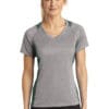 Extra color at the neck and sides with exceptional breathability moisture-wicking snag-resistant performance and value.3.8-ounce 100% polyester jersey 3.8-ounce 100% polyester interlock panels Self-fabric v-neck Removable tag for comfort and relabeling Raglan sleeves*Due to the nature of 100% polyester performance fabrics special care must be taken throughout the screen printing process.