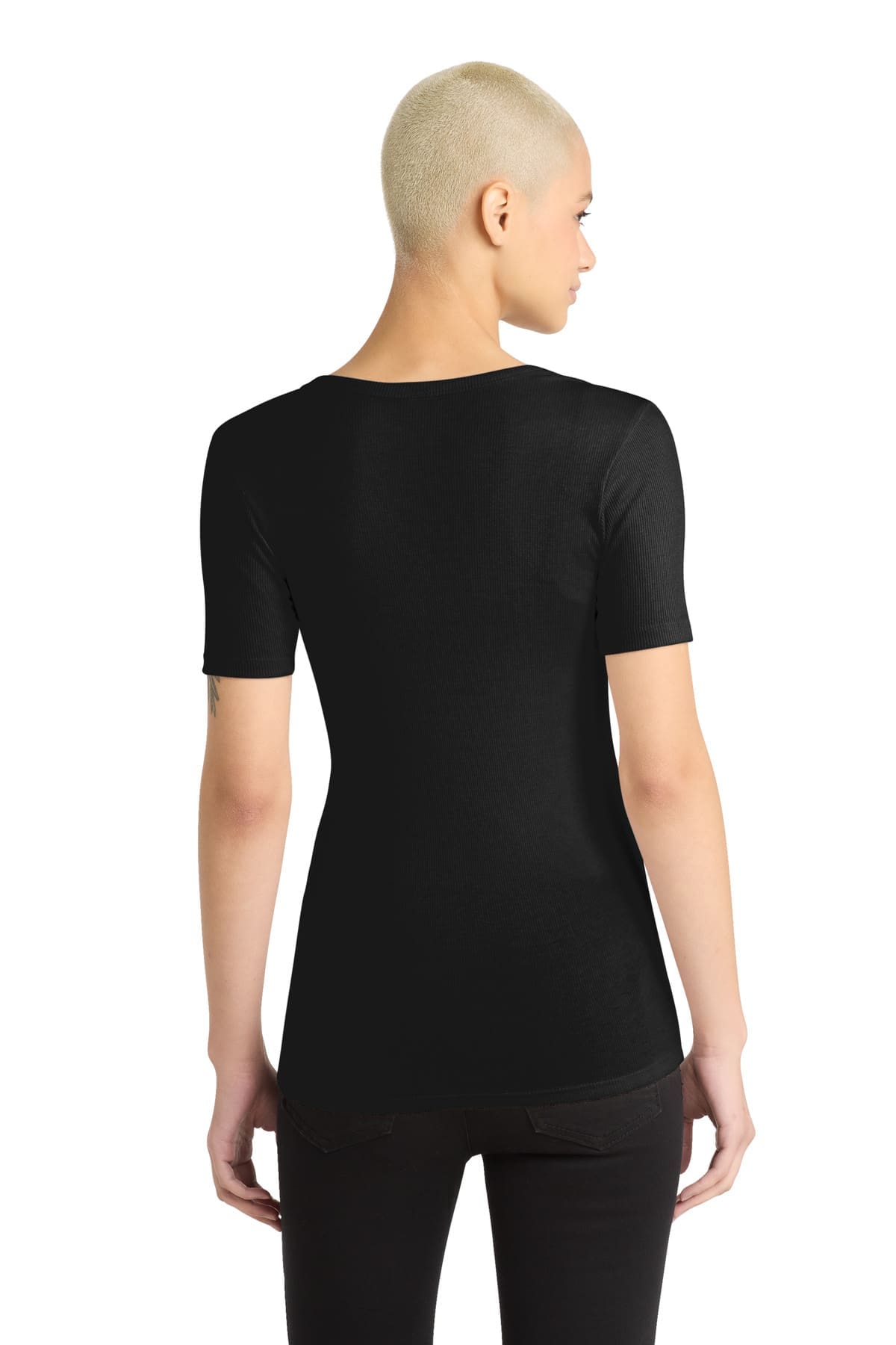 Versatile in the most important ways this rib tee can stand alone or effortlessly layer. 5.2-ounce (175 GSM)50/50 combed ring spun cotton/polyester 40 singles2x2 rib knit fabrication Bound neckTear-away label