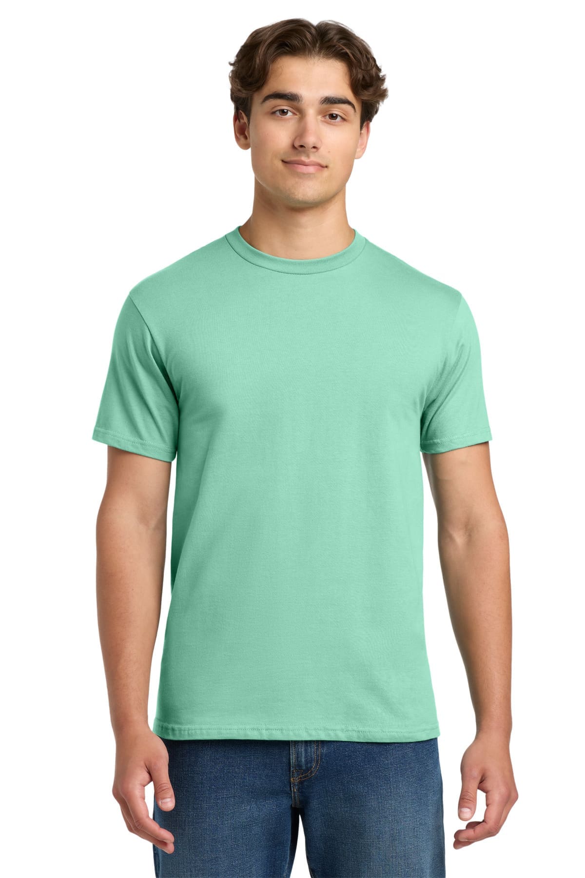 6-ounce 100% ring spun cotton 90/10 ring spun cotton/poly (Sport Grey) 50/50 ring spun cotton/poly (Graphite Heather) Seamless non-topstitched 7/8 neck Taped neck and shoulders Recycled high-performing black tear-away label Double-needle sleeves and hemPlease note: This product is transitioning from tear-away labels to recycled high-performing black tear-away labels. Your order may contain a combination of both labels.