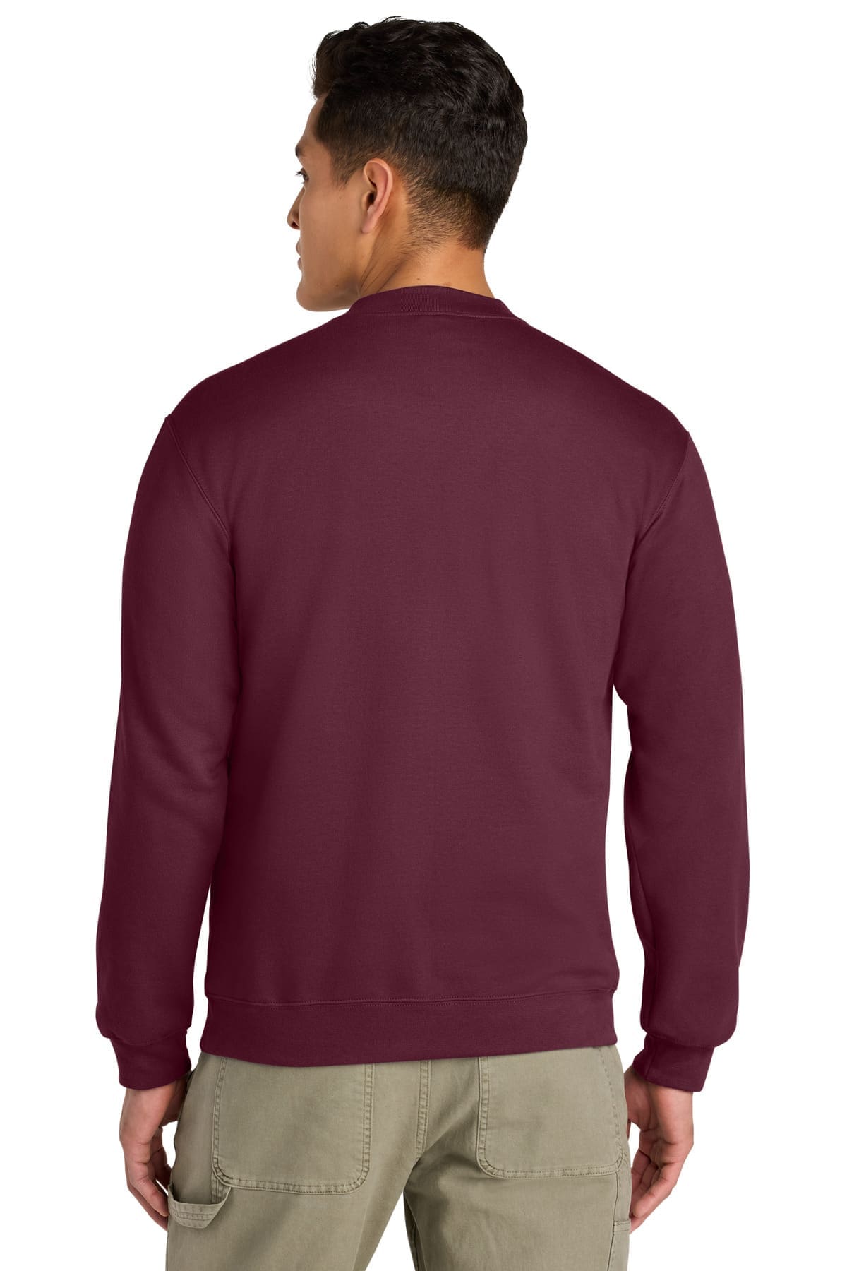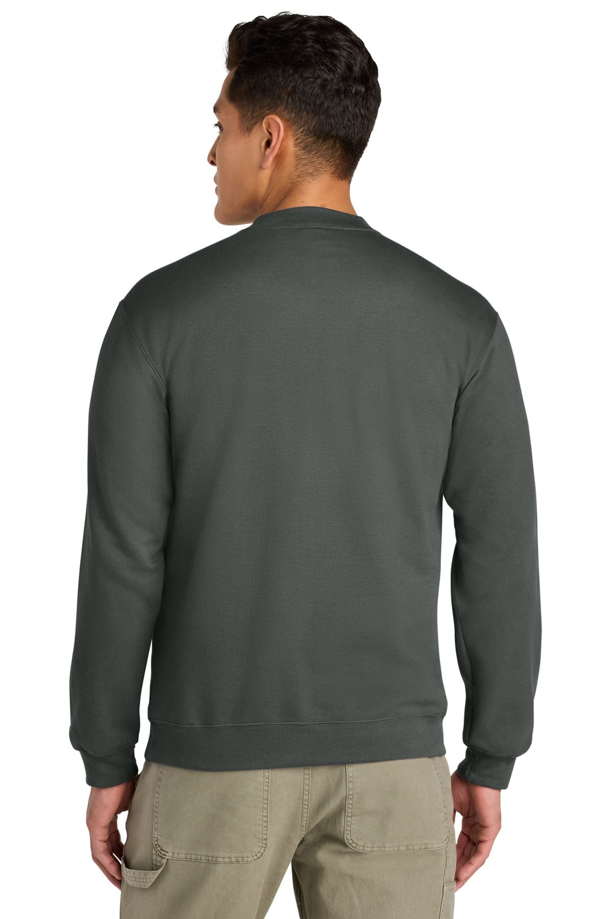 8.4-ounce 80/20 ring spun cotton/polyester75/25 ring spun cotton/polyester (Ring Spun Sport Grey) 100% ring spun cotton face 1×1 rib with spandex varsity collar cuffs and bottom band Dyed-to-match reverse coil locking zipper Classic fit tubular body Recycled high-performing black tear-away label