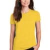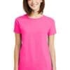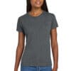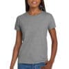 6-ounce 100% US cotton 90/10 cotton/poly (Sport Grey) 50/50 cotton/poly (Dark Heather Safety Green Safety Pink) Non-topstitched classic width rib collar Taped neck and shouldersFeminine-inspired stylingRecycled high-performing black tear-away labelPlease note: This product is transitioning from tear-away labels to recycled high-performing black tear-away labels. Your order may contain a combination of both labels.