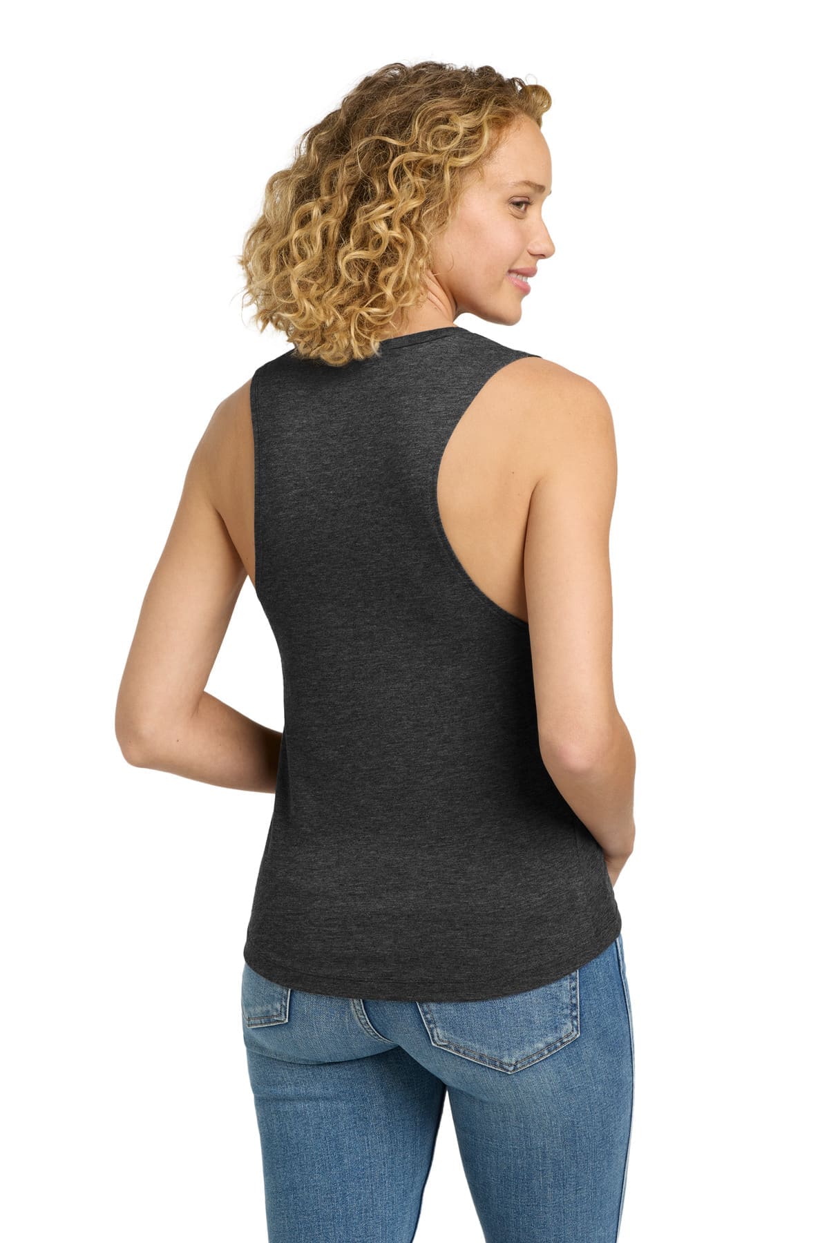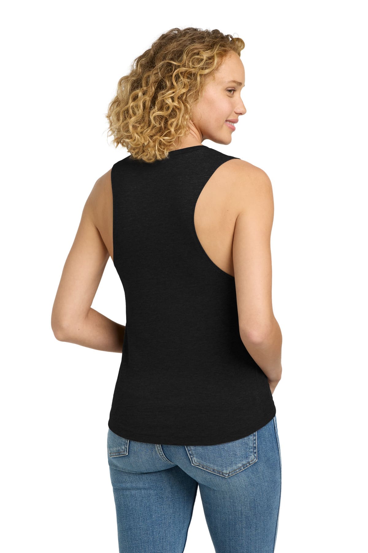 3.5-ounce 65/35 poly/combed ring spun cotton 40 singles 1×1 rib knit neck Hemmed oversized armholes Slight drop tail hem Tear-away label Side seamed Fitted