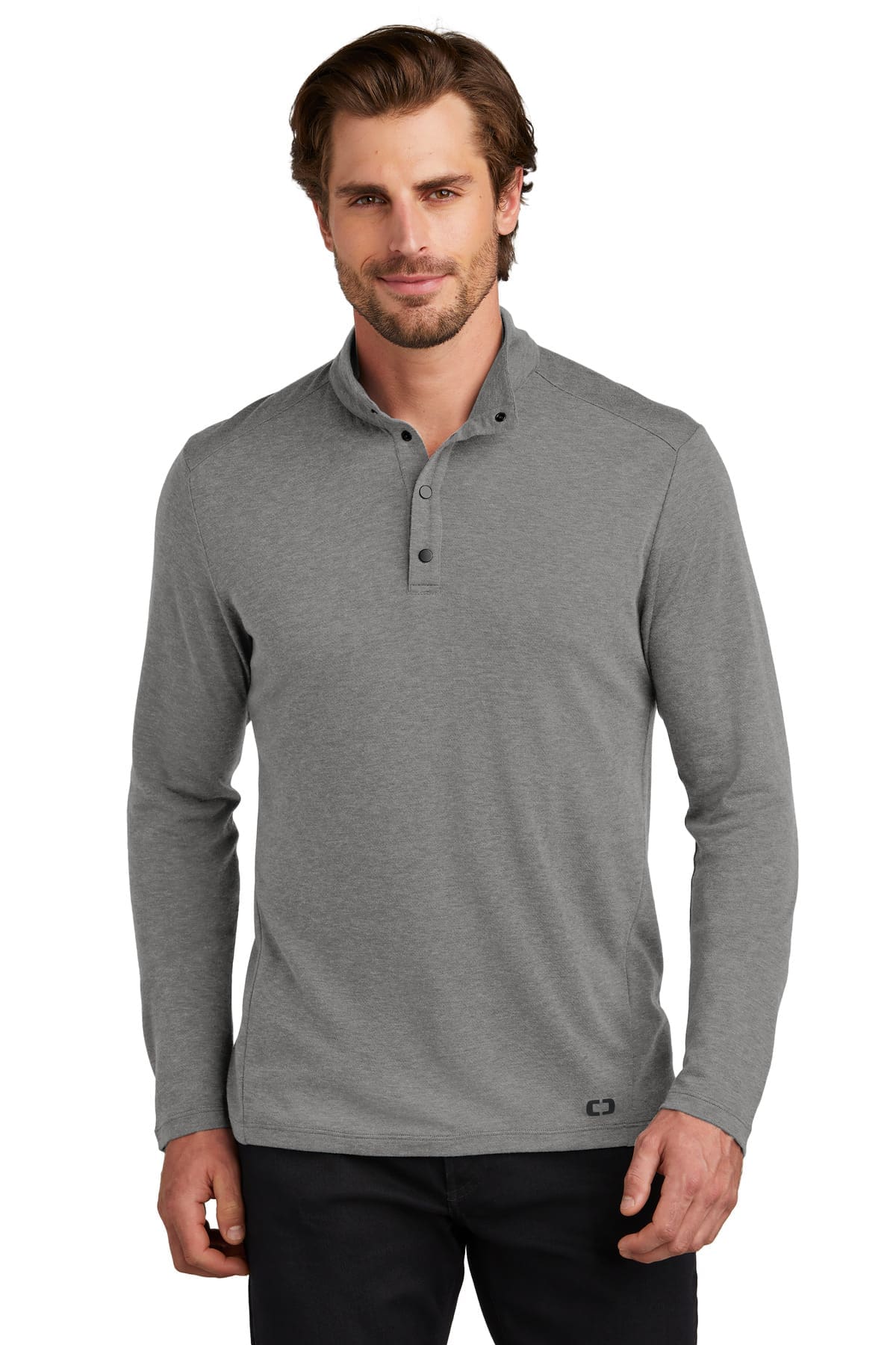 Take command of your layering options in this 1/4-snap that mixes OGIO edge with a hint of fine merino wool.4.9-ounce 85/15 poly/merino woolDouble-knit with polyester wool jersey face and polyester mesh backOGIO heat transfer label for tag-free comfortSelf-fabric cadet collarMatte black metal snaps Forward side seamsBlack reflective O heat transfer on front left hem