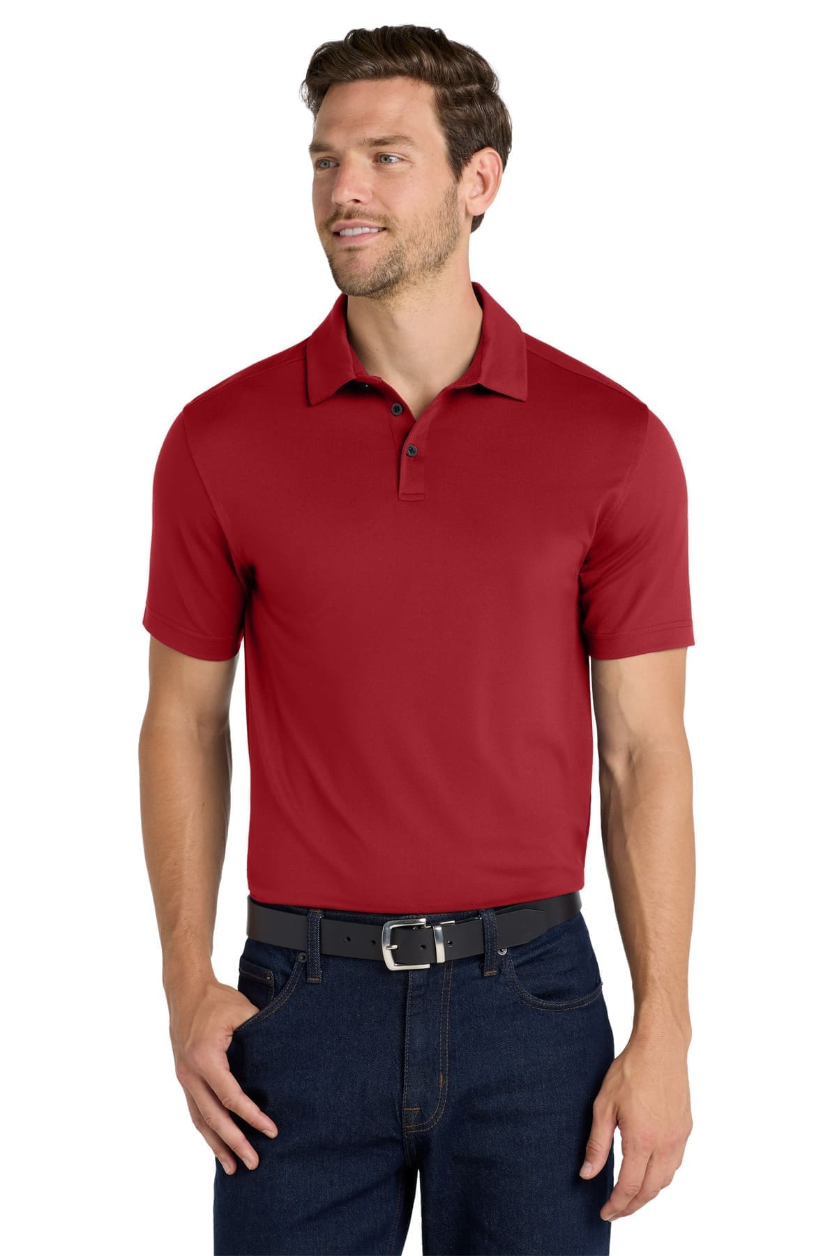 Performance joins professionalism in this Easy Care style that is snag-resistant and wicks moisture while also resisting odors.5.6-ounce 94/6 poly/spandexSnag-resistantStretchMoisture-wickingOdor-resistantEasy CareSelf-collar with collar standTag-free label3-button placketPearlized smoke buttonsSide vents with contrast twill tape
