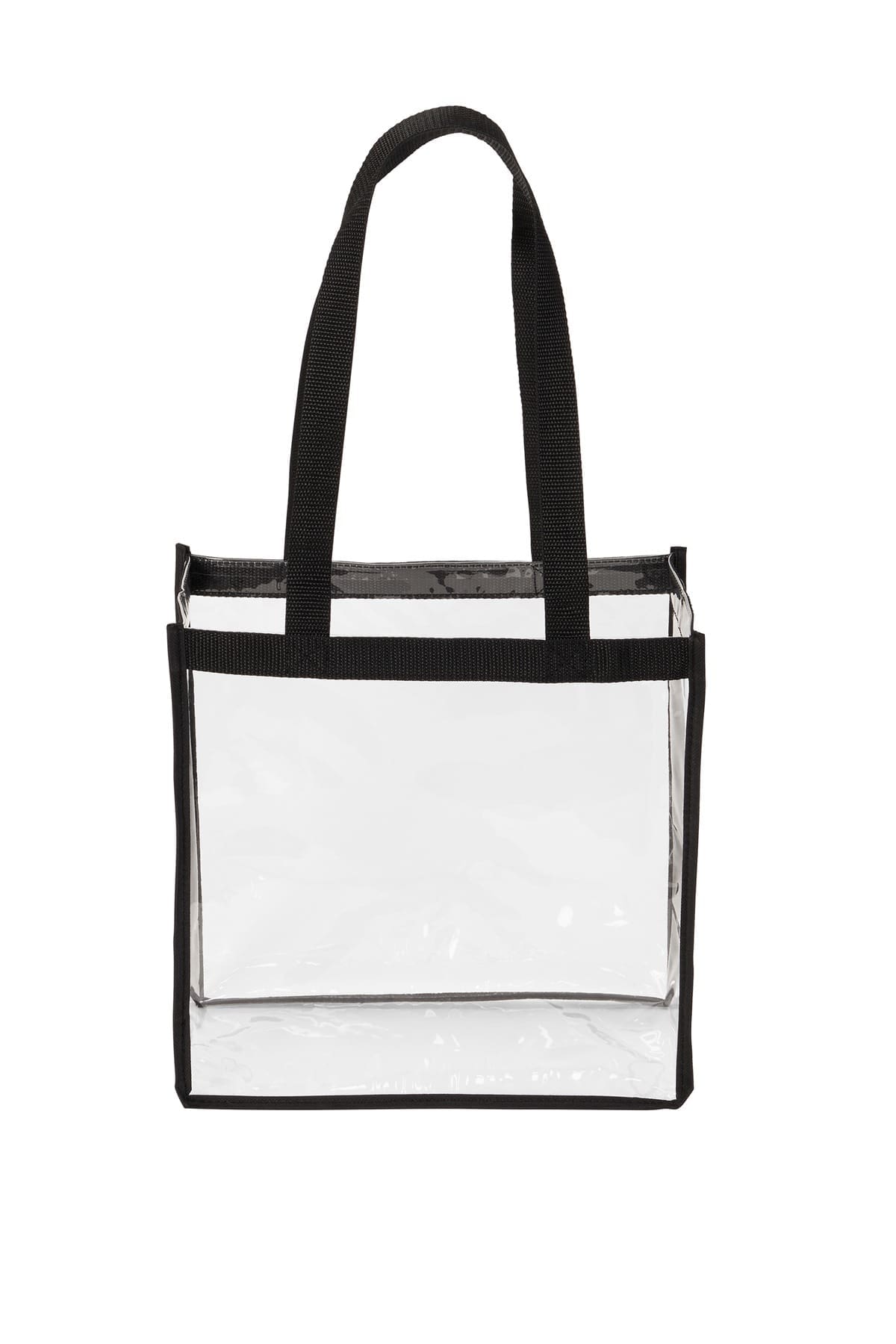 This see-through tote meets the policies for stadiums concerts and events that allow clear bags. Clear PVC Polyester webbing handles and trim Dimensions: 11.75 h x 11.75 w x 5.75 d; Approx. 794 cubic inchesNote: Bags not intended for use by children 12 and under.
