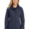 This sophisticated breathable and waterproof shell is fully seam-sealed to fight the elements with a water-shedding durable water-repellent (DWR) finish. Weatherproof outer layer into which other Collective styles can be zipped and secured by snap attachments 100% polyester shell with DWR finish 100% polyester printed lining 8000MM fabric waterproof rating 3000G/M2 fabric breathability rating Slightly longer length Attached adjustable hood with locking drawcord Reverse coil zippers Interior chest pocket Full-length interior storm flap Full-length exterior storm flap with snap closure Adjustable snap cuffs Zippered hand pockets Hidden front pockets with flaps over second pockets and snap closures Port Pocket for decoration access