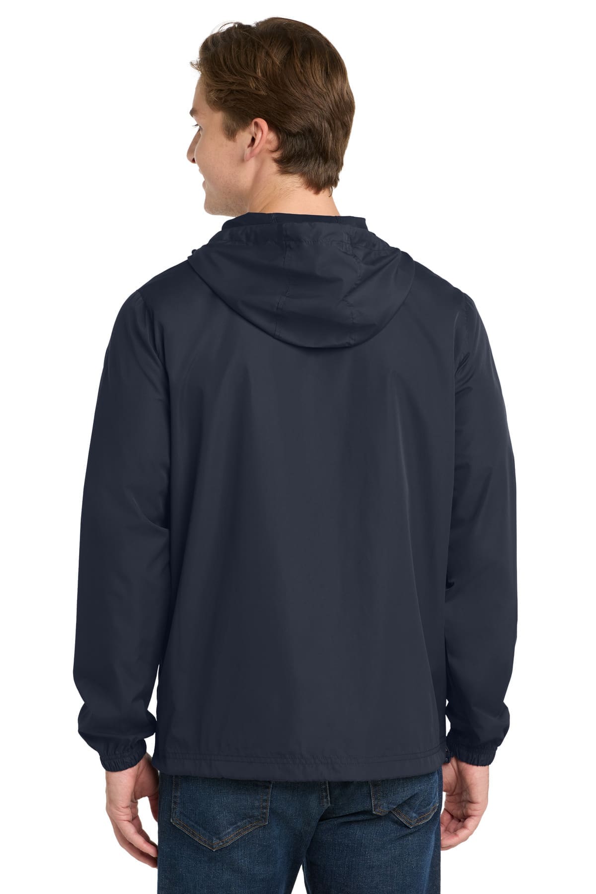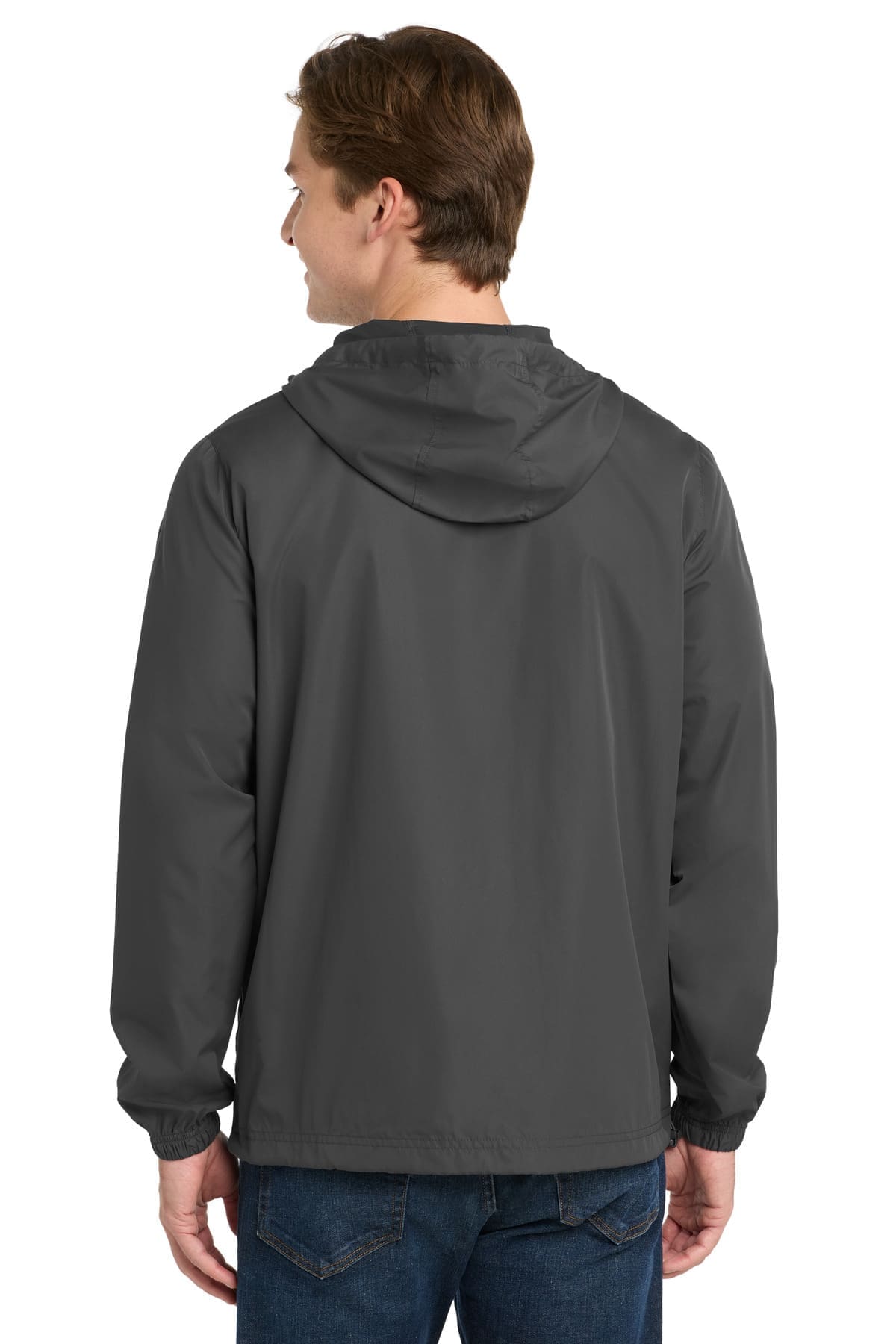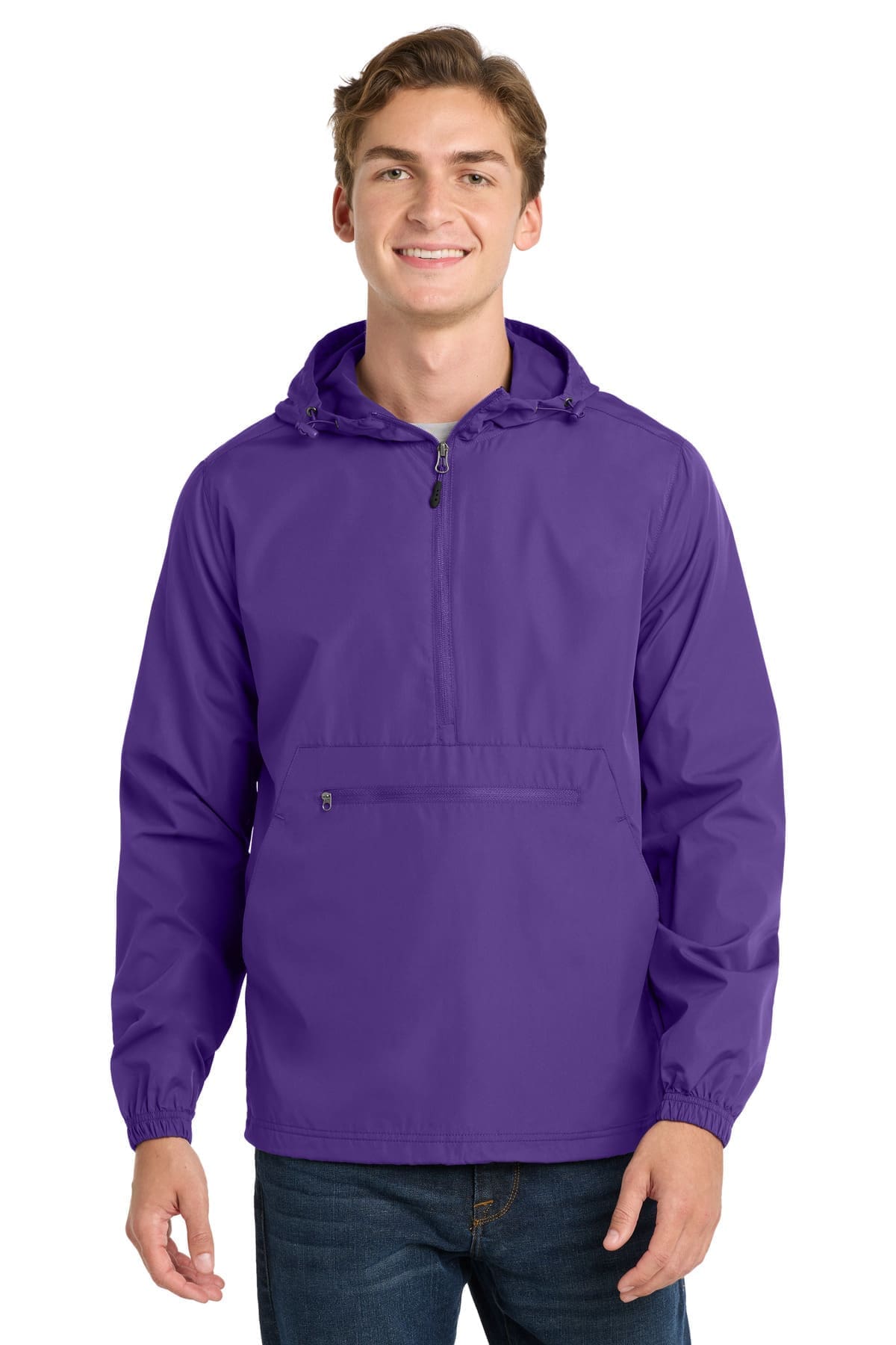 This water- and wind-resistant essential packs into its own front pocket-making it easy to throw it into a gym duffel. 100% polyester shell Three-panel hood with drawcord and toggles Tag-free label Extended reverse coil center front zipper for easy on/off Elastic at cuffs Packs into front zippered pocket Front pouch pocket Drawcord hem with toggles