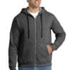 This hefty true-blue fleece has a grittier textured hand-plus it’s crafted with durability to stand the test of time. 13-ounce 80/20 cotton/poly 50/50 cotton/poly (Charcoal Heather Strong Navy Heather) Proudly American made 1-panel hood with dart for fit Metal grommets with drawcords with knotted ends Twill neck tape Slightly forward shoulders 1×1 rib knit V inset at neck 1×1 rib knit cuffs and hem Front pouch pocket Side seamed Woven label